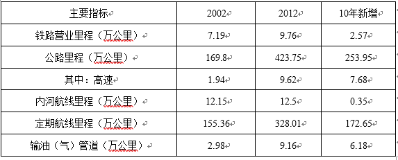 物流的基础设施,从交通运输来讲,这十年国家进行了大量投入,取得了巨大进步(见下表)。