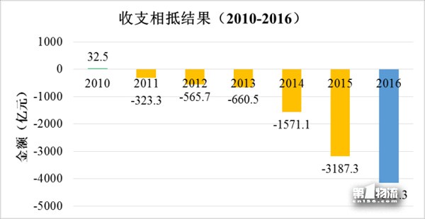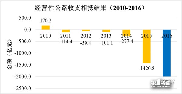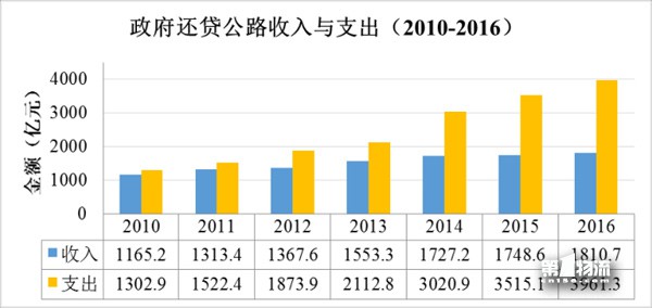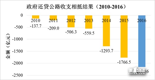 2016年全国收费公路收支缺口4143.3亿元。与2010年至2015年相比,收支缺口进一步扩大,但增速有所减缓。