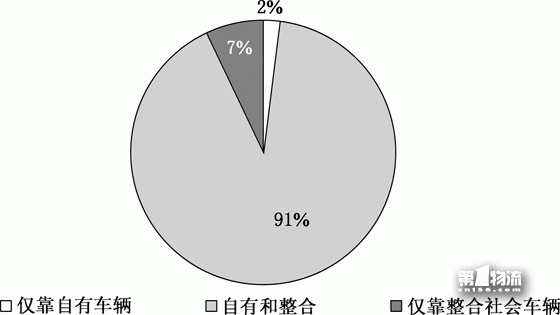 根据统计数据结果,依靠自有车辆运营的物流园区比例仅为2%,依靠整合社会货运车辆的园区比例为7%。大部分物流园区采用自有货运车辆和整合社会货运车辆相结合的方式,如图15所示。