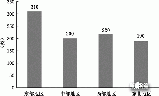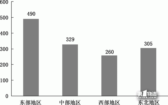 通过统计分析,我国不同经济区域的物流园区平均入驻企业数量可知,东部地区物流园区内入驻企业数量最多,平均为310家。如图28所示。
