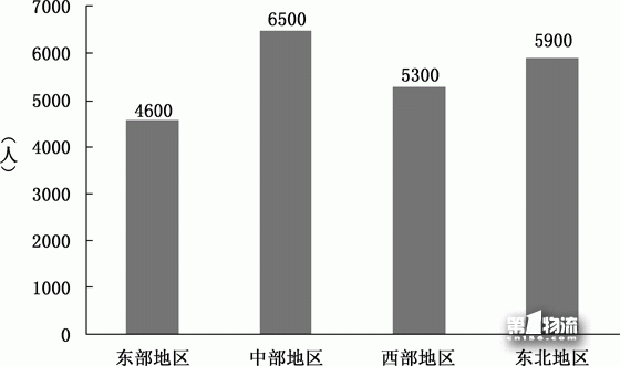 我国不同经济区域的物流园区就业人数示意图如图23所示。从中可以看出,中部地区物流园区就业人数较多,东部地区的物流园区就业人数较少。
