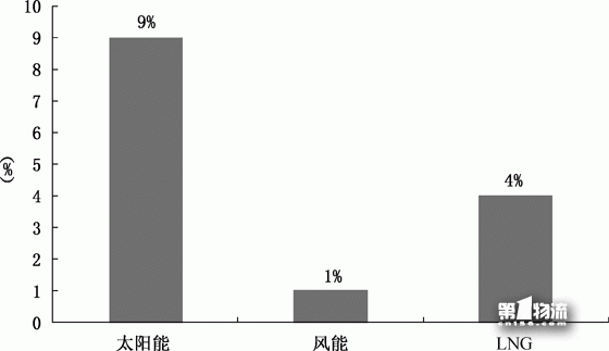 目前,样本物流园区中已有13%的园区使用了新能源(其中有一家物流园区同时使用了风能和LNG两种新能源),使用的新能源以太阳能、风能以及LNG等为主,具体情况如图26所示。