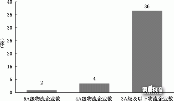 从入驻园区的物流企业质量来看,2014年入驻园区4A及以上物流企业的数量平均为6家。入驻不同级别物流企业平均数量如图29所示。